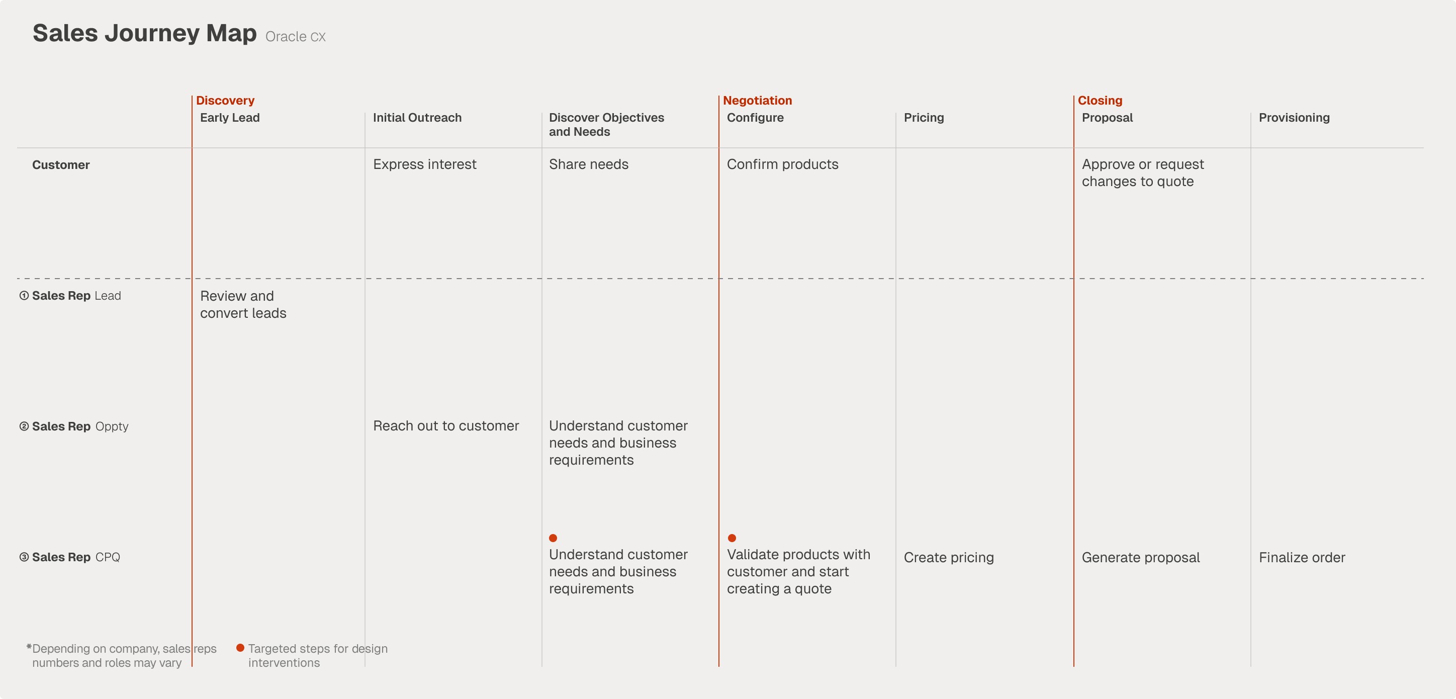I interviewed 9 members across the Oracle CX team: both product experts and those working directly with sales reps. Together, they helped me map the full sales process from first contact to closed deal.